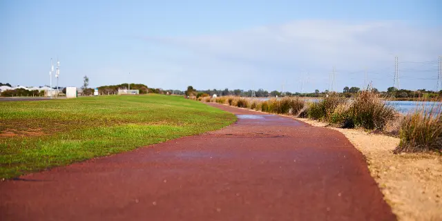 There are 11 (eleven) kilometres of paved pathing in and around the main buildings and complex. These paths extend to and go around the buildings and around the lake. We technically have 2 (two) pedestrian paths around the lake, one called the Events Paths, the other being a shared path which goes in and out of the residential area at times. The Events Path is occasionally closed for regattas and duo/triathlons. However, the other path always remains open.