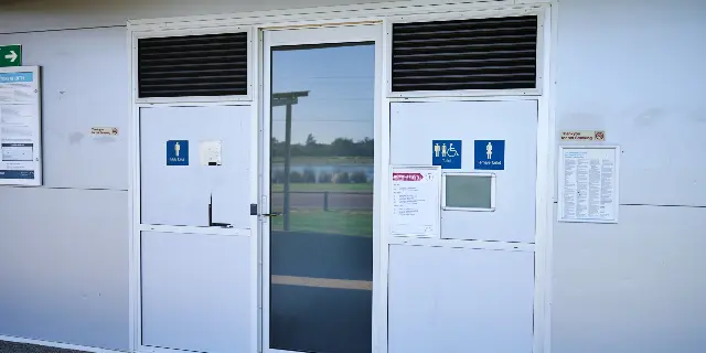 Onsite there are 2 (two) standalone accessible bathrooms located on the bottom floor of the main building, by the main bathrooms. These both have installed assistive railing and a shower. One of the bathrooms has a seat under the shower, whilst the other has a change table in it. The outside of the door of both bathrooms are inscribed with braille, denoting them as accessible bathrooms.